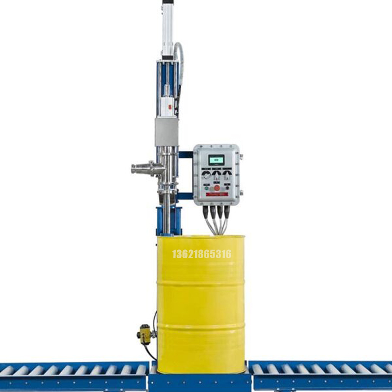半自動防爆鼓式涂料灌裝機,適用于灌裝溶劑型粘性液體,最大稱量300公斤。