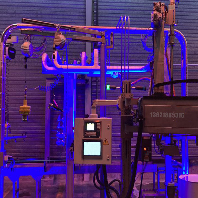一個(gè)12英寸的人機(jī)界面屏幕,沖洗系統(tǒng)由一個(gè)漏斗組成,噴嘴放置在漏斗上。通過(guò)絞擰程序,它下降到一個(gè)已知的位置并打開(kāi)。當(dāng)設(shè)定的排水時(shí)間到期時(shí),程序結(jié)束,加蓋和開(kāi)蓋工具,接地系統(tǒng),為了幫助操作員裝卸貨盤(pán),對(duì)電氣柜進(jìn)行了改造,使其可以移動(dòng)。