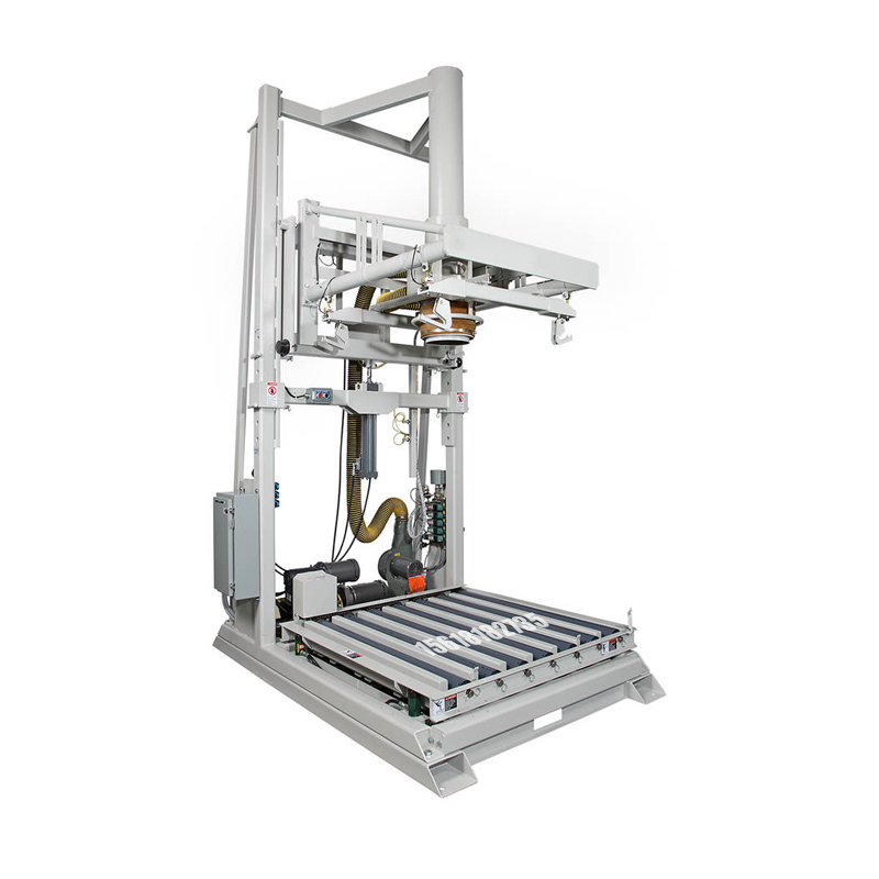 In this system, the bag is filled in a hanging position, and then lowered for settling. The machine can be adjusted for any bag height within the filler’s range.